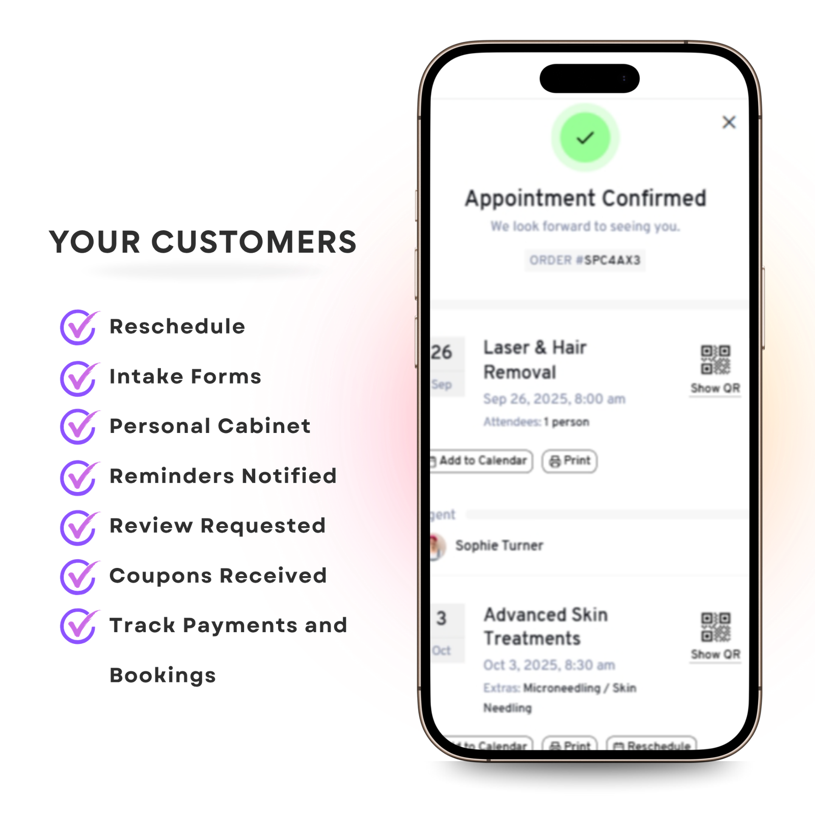 - “I love how professional our booking page looks. It feels like a custom website built just for us.” Laura Mitchell Skincare Specialist & Co-Founder @DermaGlow Skin Clinic 5.0