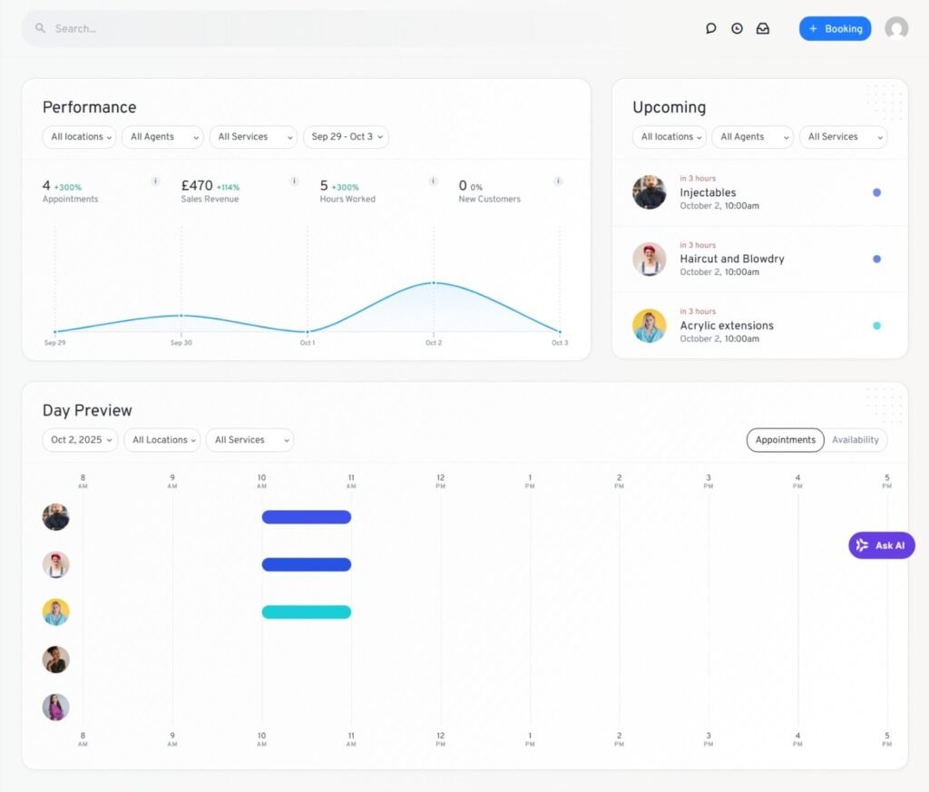 Track Online and Offline Bookings, Manage Staff Schedules, Services, Payments, and Locations. All from a single easy-to-use dashboard.
